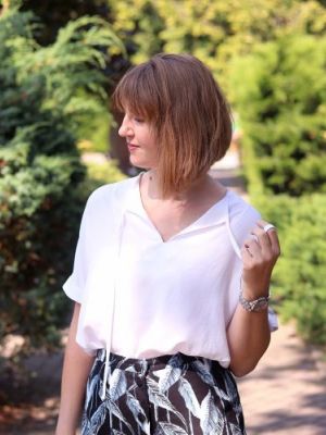 Oto bluzka z przewodnikiem szycia. Raglanowe rękawy, marszczenie pod dekoltem, lamówki i kokardki. O wszystkim tym przeczytasz w przewodniku szycia. I jeśli nawet będzie to Twój pierwszy szyciowy projekt, to na pewno dasz sobie radę.